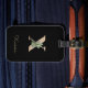 Eleganter schwarzer Gepäckanhänger mit einem goldenen botanischen Monogramm in der Mitte.