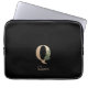 Der elegante schwarze Laptop-Ärmel weist in der Mitte ein goldenes botanisches Monogramm auf.