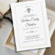 Eine Imitate-Prägung dreifacher Rahmen Abschlussfeier Einladung für einen Jurastudium, der einfach, aber raffiniert, zeitlos und elegant ist. Bitte beachten Sie, dass die Prägung in den Rahmen durch ein Bild erzeugt wird und keine eigentliche Prägung auf der Karte erscheint. Oben zeigt eine stilisierte Vektorgrafik eines Gebäude das Jahr des Abschlusses. Passen Sie jede Textzeile an. Schwarz und Weiß.