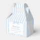 Elegantes Gefallen-Box-Design mit einem blassblauen Bogen in Aquarellfarbe und blauen und weißen Streifen. Hier für eine Hochzeit angezeigt, aber der gesamte Text kann für Ihre Veranstaltung personalisiert sein (Sie können auch Textfelder aus dem Design-Tool hinzufügen oder löschen). Das Zimmer war sehr sauber, das Brautparty war sehr gut.