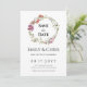 Elegant Bloral Eukalyptus Hochzeit speichern Sie das Datum flache Karten für Ihren besondere Anlass! Aquarellblumenkranz und Blattblumenkranz mit rosa und lila und roten Pansy-Blume, Eukalyptus-Blätter umrahmen Ihre Hochzeitsfeier " Save the Date ". Ideal für Frühling und Sommer! Ihre Namen sind in Kalligraphie-Schriftart unter dem Kranz, und umgekehrt Karte, um ein blaues Terrakotta-Muster auf der Rückseite zeigen. Passen Sie Ihre Hochzeitsdetails, Datum, Veranstaltungsort und vieles mehr an der Vorderseite an.