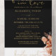 Alles in einer Hochzeitseinladung mit rustikalen Blumen und eleganter goldkalligraphischer Schrift Typografie auf schwarzem Hintergrund. Die Einladung enthält zusätzliche Gastdetails und eine perforierte RSVP-Karte, die für Sie individuell adressiert oder verlassen werden kann, damit Sie die Adressdaten Ihres Gastes handschreiben können. Entwickelt von Thisisnotme©