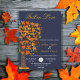 Diese elegante Hochzeit im Herbst lädt zu einer modernen Herbsthochzeit ein. Das schlichte Design ist mit einem Baum und Herbstlauben mit eleganter, weißer und gelber Typografie auf marineblarem Hintergrund gestaltet.