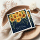 Eleganter Herbst Sonnenblume Hochzeit Napkins. Das Design besticht durch einen trendigen marineblauen Hintergrund, sommerlich gelbe Sonnenblumenfloralen und Grünpflanzen mit weißer Kalligraphie und serif Schriftart. Matching-Elemente verfügbar.
