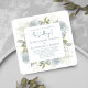 Dieses Design zeichnet sich durch elegante bläulich blühende Rose, eine QR-Code-uAwg-Antwort, eine scannable Scan-Website online Gast, eine Web-Adresse mit mehr Informationen, ein botanisches Grün Blätter Blattwerk, eine trendige Kalligraphie-Skript, einen modernen minimalistischen typografischen Schriftart, ein romantisches Gartendesign, eine schicke Eleganz Natur-Rose, eine klassische Hochzeit Wasserfarbe