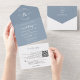Eleganter floral Dusty Blue Monogram QR Code Hochz All In One Einladung