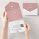 Eleganter floraler Dusty Pink Monogram QR Code Hoc All In One Einladung