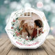 Elegante frohe Weihnachtswasserfarbe Kranz Weihnachtsgebäck Foto Block. Aquarellbilder mit Foto und Text. Elegante Weihnachtsgeschenkidee.