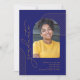 Elegantes geometrisches königsblaues und gelbes goldenes Abschluss Foto Ankündigung. ALLE FARBEN SIND mit dem Bearbeiten-Tool EDITABLE. Personalisieren Sie mit Ihrem Foto, Namen, Studienjahr und Schule. Auf der Rückseite befinden sich eine Collage von Fotos sowie eine "Signatur" ihres Namens, deren Farbe und Position geändert werden können, um den Hintergrund Ihres Fotos Anzug. Verwenden Sie den Rücken, um Zeremonie Details, Grade Party Informationen, oder ein wenig über die Zukunft des Schülers zu teilen. Foto: Darren Baker. © Kimbellished, LLC
