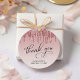 Elegante Geschenkanhänger für Ihre 50. Geburtstagsfeier mit "Danke" und "50 & Fabulous" in einem schicken Kalligraphieskript und Glitzer von Rosa und Rose Gold Imitate.