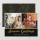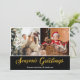 Elegante Gold Glitzer Script Saison Grüße Foto Collage Weihnachtskarte. Mit dieser minimalistischen und modernen Weihnachtskarte senden Sie Ihren Lieben herzliche Wünsche und Grüße. Alle Texte sind so vorbereitet, dass Sie sie einfach und schnell mit Ihren eigenen Details personalisieren können. Gute Ferien!