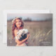 Dieses elegante Abschluss Dankeschön-Karte verfügt über ein volles Foto und eine elegante Kalligraphie. "Danke" ist in hübscher Goldschrift in der unteren rechten Ecke geschrieben, mit dem Namen des Absolventen und Abschluss Jahr unten. Das gold-weiße Typografie-Design überlagert ein volles Foto des neuen Absolventen (horizontal/landschaftlich orientiert). Der Rücken ist leer und kann zusätzliche Fotos oder eine personalisierte Note für Empfänger aufnehmen.
