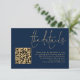Eleganter Gold Script Navy QR Code Hochzeitsdetail Begleitkarte