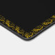 Eleganter Goldrahmen und Monogramm auf schwarz Schreibtischunterlage