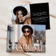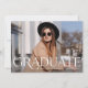 Moderne Abschluss-Ankündigung mit dem vollblutenden horizontalen Foto des Absolventen auf der Vorderseite mit "Graduate" in einem eleganten, weißen Texteüberlagerungsstück. Personalisieren Sie die Front der einfachen Abschluss Ankündigung mit dem Namen und Abschluss des Absolventen Jahr. Die Ankündigung kehrt zurück, um ein zusätzliches Foto mit Ihrer persönlichen Nachricht anzuzeigen. Die 2-Foto-Abschluss-Ankündigung eignet sich sowohl für Absolventen der Highschool als auch für Absolventen der Uni.