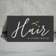 Elegante, anpassbare Visitenkartenvorlage mit IMITATEN Gold-Schere-Ikone /grauer Hintergrund und handgeschriebener Text. Die Zimmer sind sauber, das Personal freundlich und hilfsbereit.