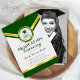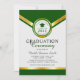 Dieses Abschluss-Einladung-Design zeichnet sich durch eine elegante formale Anordnung der Farben Grün, Hellgrau und Gold mit einem grünen Hut und grünen Abschlüssen aus. Personalisieren Sie Ihr eigenes Abschluss im Hintergrund der Einladung.