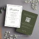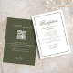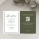 Vervollständigen Sie Ihre Hochzeitssuite mit dieser eleganten Empfang-Karte, die mit einer dunkelolivgrünen Farbe und einer stilvollen, raffinierten Palette gestaltet wurde. Die Karte besticht durch stilvolle Kalligraphie und klassische formale Typografie und strahlt moderne Eleganz aus. Die im Lieferumfang enthaltene QR-Code-Hochzeit-Details führen Sie direkt zu Ihrer Hochzeitswebsite UAWG für eine nahtlose, moderne Antwort online erleben. Teilen Sie einfache Gästebuchungen und wichtige Informationen im Web, und kombinieren Sie Schönheit und Funktionalität für Ihren besonderen Tag!