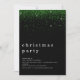 Eleganter grüner Glitzer Confetti Weihnachts-Party Schwarz. Der Header ist groß in stilvollen Kleinbuchstaben mit den Details unten. Viel Platz für ein zeitgenössisches Ambiente und eine Grenze von konfetti grünem Glitzer an der Spitze auf beiden Seiten. Personalisieren Sie den Text einfach auf Ihre eigenen Daten.