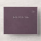 Mit diesem schicken Eggplant Themed Wedding Invitation laden Sie Ihre Lieben mit modernem Komfort ein. Dieses einladende Hochzeitsvorschlaf bietet einen Lila Hintergrund von Eggplant mit einer subtilen Textureinlage und einer weise grau Akzent rsvp-Karte. Passen Sie den Text an, fügen Sie einen QR-Code hinzu und fügen Sie Ihre Website und E-Mail für eine einfache, minimalistische All-in-One-Hochzeitseinladung hinzu. Perfekt für das stilbewusste Paar, das ein einzigartiges und funktionales Einladungs-Design sucht.