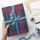 Wrap deine Weihnachtsgeschenke im Stil! Dieses festliche Geschenkpapier aus schottischem Tartan zeichnet sich durch ein klassisches marineblau, jägergrün, rot und weiß kariertes Muster aus.
