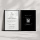 Klassischer QR-Code für Schwarz-Weiß-Blatt-Monogramm in einer Einladung zur Hochzeit.