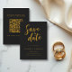 Diese elegante Schwarz-Gold-Hochzeit rette-the-date-Karte ist ideal für eine moderne Hochzeit. Das einfache Design zeichnet sich durch elegante goldene Kalligraphie auf schwarzem Hintergrund aus. Die Karte enthält auch einen QR-Code für die Hochzeitswebsite auf der Rückseite.