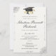 Mit einem klassischen, weißen Hintergrund und edlen Akzenten in der Blumenecke besticht diese Einladung durch einen raffinierten Script-Schriftart-Stil und ein geschmackvolles Schwarz-Gold-Farbschema. Das Design beinhaltet eine symbolische Graduierenkappe und eine Scrollgrafik, die Ihrer Feier eine Touch der Tradition verleiht. Personalisieren Sie den Text, um Familie und Freunde zu der Zeremonie und Feier einladen, sodass der besondere Tag Ihres Absolventen ist schön gedenken. Diese Einladung, die auf hochwertigem texturiertem Papier gefertigt wurde, ist der perfekte Weg, diesen Meilenstein mit Stil und Anmut zu markieren.