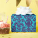 Eleganter lila Blumendamast-Blau-Hintergrund Geschenkpapier