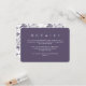 Elegante und schicke lila-weiße Blumen-Gästekarte mit hübschen botanischen Mustern und klassischem Typografie-Design. Laden Sie diese Sammlung für die Koordinierung der Hochzeitseinladungen ein!