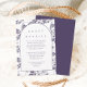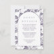 Elegante und schicke lila-weiße Blumen-Gästekarte mit hübschem botanischem Muster und klassischem typografischem Bogendesign. Laden Sie diese Sammlung für die Koordinierung der Hochzeitseinladungen ein!
