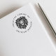 Die elegante Lion aus der Bibliothek des Individuellen Namens Buch-Selbstfarbige Briefmarke weist einen runden Rahmen aus: aus der Bibliothek von und Ihrem individuelle Name in der modernen Typografie mit einem wunderschönen, eleganten Löwenkopf in der Mitte.