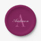Eleganter Magenta Rot, Rosa und Weiß Name & Monogr Pappteller
