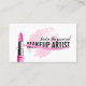 © Persönlichkeit des öffentlichen Lebens-Entwürfe 2010. Lippenstift, Lippenstiftkuß und ein Swish machen eine Spaß-Maskenbildner-Visitenkarte. Eine perfekte Visitenkarte für einen Maskenbildner, einen Schönheitssalon, Kosmetik, einen Cosmetologist oder einen Beautician. Bedarf HILFE bei der Kundenbezogenheit?