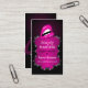 © Persönlichkeit des öffentlichen Lebens-Entwürfe 2012. Ein eleganter Maskenbildner-Visitenkarteentwurf mit den sinnlichen rosa Lippen und einer luxuriösen Fahne für Ihren Text. Der Entwurf enthält auch ein weiches Hintergrundglühen und ein Monogramm auf der Rückseite.