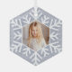 Fügen Sie Ihrem Baum mit diesem eleganten minimalen Imitat ein Glanzstück Freude lila Glitzer Schneeflocke Foto Hexagon-Ornament aus Glas. Unser Design verfügt über ein Imitat lila Glitzer Hintergrund mit einem Snowflake Foto Rahmen, um Ihr spezielles Foto zu zeigen. Ein wunderschönes Foto-Sake-Ornament, das sich perfekt eignet, um mit Freunden und der Familie zu teilen.