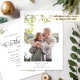 Freuen Sie sich auf diese elegante Hochzeitseinladung mit wunderschönen Eukalyptus-Grünflächen in Aquarellen und prächtigen, modernen handschriftlichen Kalligrafiedetails. Möglichkeit, ein Bild auf der Rückseite und ein paar Hochzeitsdetails hinzuzufügen, oder, um alle löschen und die Rückseite leer verlassen, indem Sie "Bearbeiten mit dem Design-Tool" (befindet sich am Ende der Vorlage Textfelder und löschen Sie das Bild aus dem Editor Bildschirm. Minimales, aber elegantes Design, Teil unserer Kollektion "Minimal and Graceful Eucalyptus Wedding" mit einer Vielzahl von Produkten zur Koordination, inklusive Einsteckkarten und RSVP Karten für den Fall, dass Sie die Rückseite leer verlassen und Gehäuse-Karten hinzufügen möchten.