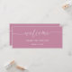 Eleganter rosafarbener Sitzcharts-Header mit feinen, modernen handgeschriebenen Kalligrafieelementen. Koordination der verfügbaren Sitzkarten. Eine doppelseitige Karte, damit die Gäste sowohl von vorne als auch von hinten nach ihren Namen schauen können. Der Platz ist frei, um Clips oder Lochlöcher für hängende Displays zu verwenden. Teil unserer Kollektion "Mauve Pink Watercolor Monogram Wedding" mit einer Vielzahl von Produkten zur Koordination, darunter passende Sitzkarten, Tischnummern und Menüs.