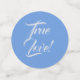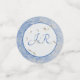 Das Design weist einen eleganten blau-graufarbenen "Marmoreffekt" auf, der als Hintergrund für die Form dient und in der Mitte die Initialen von Braut und Bräutigam in einem blauen Skript zeigt. Das Erscheinungsbild der zarten Bänder überlagert das Design. Die Rückseite ist blassblau, jeder mit anpassbarem Text. Entworfen, um die Hochzeitssuite "Blue and Gray Marble" zu begleiten.