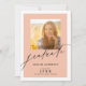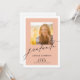 Diese elegante Graduierungsparty-Einladung bietet zwei Fotorahmen, eine auf der Vorderseite und eine auf der Rückseite. Dieses helle orangefarbene Design wird durch einen stylischen Text in Handschrift und einen dicken weißen Rahmen betont. Personalisieren Sie die Rückseite mit Ihren Party Einladungen Details.