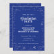 Elegante blaue mathematische Einladung mit einem Hintergrund von mathematischen Formeln und Gleichungen. Perfekt für Mathematik- und Ingenieurabsolventen. Illustriert und entworfen von Patricia Alvarez.