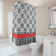 Eleganter Duschvorhang aus schwarz-weißem Deko. Matching Handtuch Sets vorhanden.