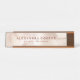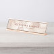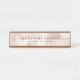 Stilvolles Schreibtisch-Namensschild-Design mit goldener Marmorstruktur aus Imitat aus Kupfer-Rose und elegantem Schriftart.