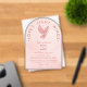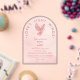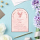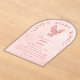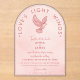 Diese elegante und moderne, bogenförmige Hochzeitseinladung besticht durch eine romantische Mischung aus Eleganz und Charme, inspiriert durch zeitlose Shakespearesche Romantik. Die Vorderseite zeigt einen atemberaubenden Aquarellhintergrund in sanften rosa Farbtönen, der dem Design Textur und Tiefe verleiht. Ganz oben steht das Zitat "Leuchtflügel der Liebe" von Romeo und Julia, elegant gewölbt, um die Form der Einladung zu ergänzen. Unter dem Zitat symbolisiert eine wunderschön detaillierte Taubenillustrierung Liebe und Einheit, die sich nahtlos in das romantische Thema einbinden. Die Namen des Paares, "James + Anna", werden in fett gedruckter, minimalistischer Typografie dargestellt, wodurch ein auffälliger und ausgewogener Fokus entsteht. Die Veranstaltungsdetails, einschließlich Datum, Uhrzeit, Ort und Empfang, werden in einem sauberen und lesbaren serifenlosen Schriftart präsentiert, wobei die moderne und minimale Ästhetik des Designs gewahrt bleibt. Ein dünner Rahmen mit zarten Herzakzenten bildet den Rahmen der Einladung, indem er eine Touch Charme verleiht und die Elemente zusammenbindet.