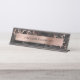 Dieses elegante, moderne Namensschild besticht durch ein Hintergrundbild aus schwarzem Marmor mit goldenen Venen aus Rose. Personalisieren Sie es mit Ihrem Namen in schwarzen Serif-Schriftart auf einem Imitat gebürstete Rose Gold-Folie Rechteck.
