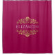 Ein eleganter Duschvorhang in heißen Rosa und Gold blühte Monogramm. Fügen Sie Ihren Namen zwischen den goldenen Blüten auf der Vorderseite geblüht. Entworfen für Sie von BlackBerry Boulevard.