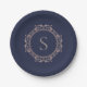 Eleganter Monogram Moderner klassischer Navy-Kupfe Pappteller