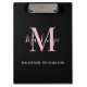 Elegante Schwarz-Rosa-Personalisiert-Monogramm-Bezeichnung-Zwischenablage