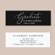 Mini Black Abschluss Namenskarte, um in Ihre Abschlussankündigungen und Party Einladungen einzuschließen oder Freunde und Familie mit "Graduate" in einem eleganten, weißen Drehbuch und Ihrem Namen und Klassenjahr in schlicht weißer, moderner Typografie auszugeben. Fügen Sie auf der Rückseite Ihre Kontaktinformationen oder andere Informationen hinzu.