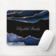 Eleganter Name Navy Blue Rose Gold Agate Black Mousepad